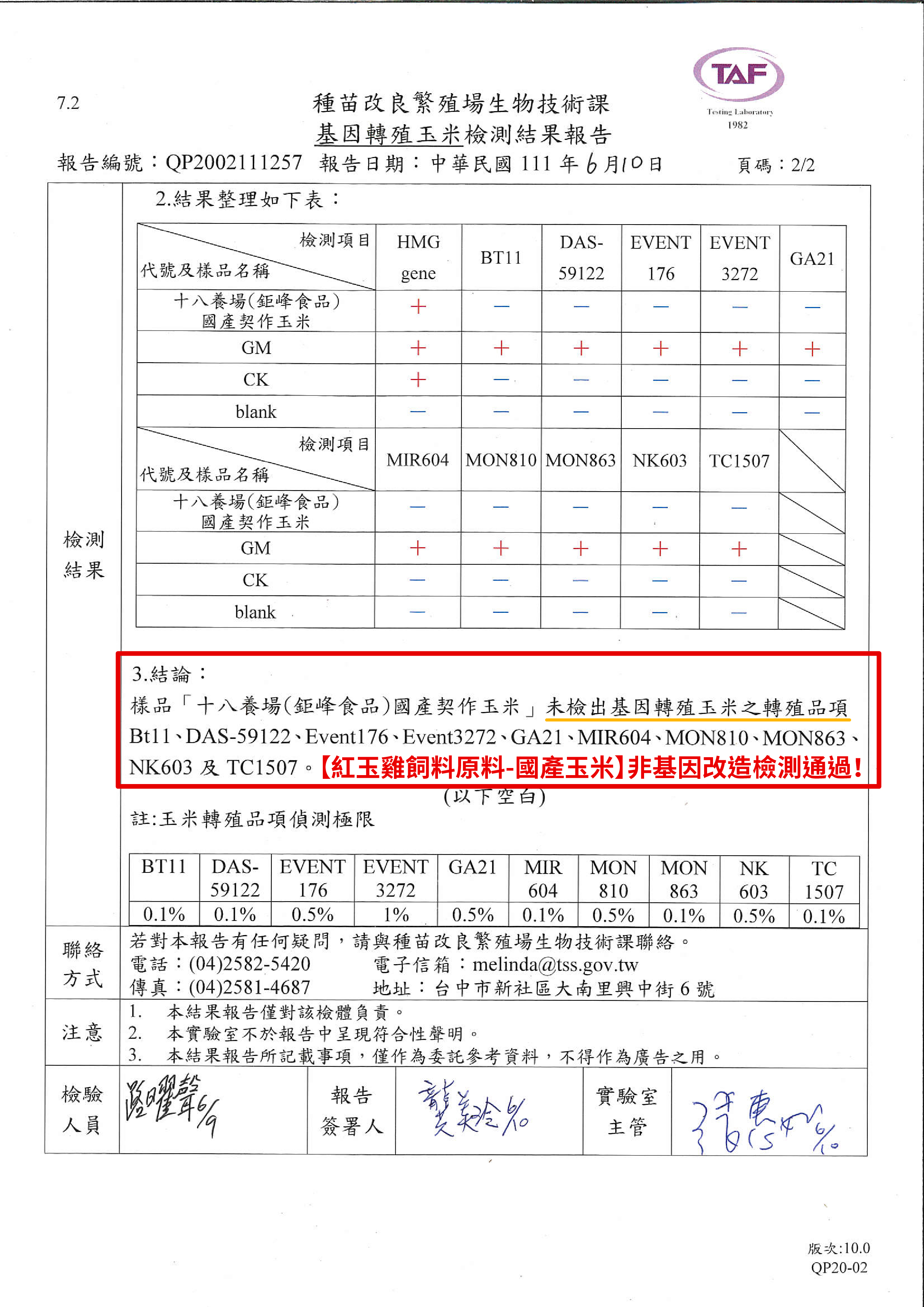 2022/06 飼料用玉米原料非基改檢驗報告02