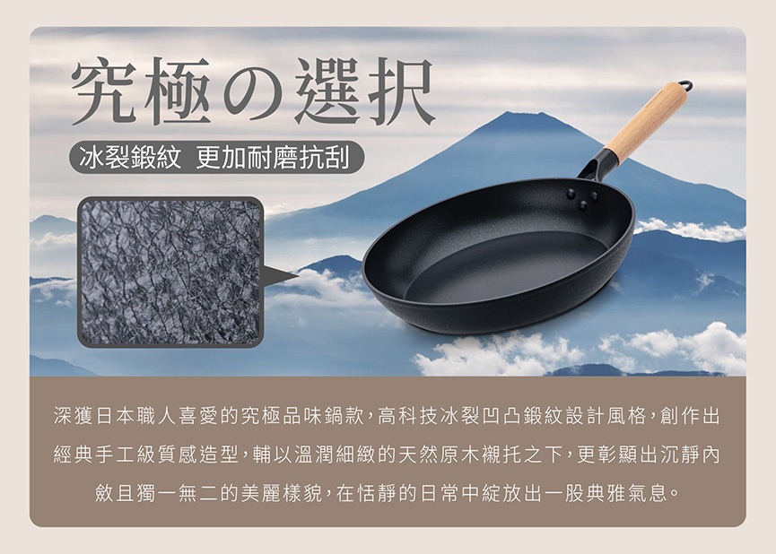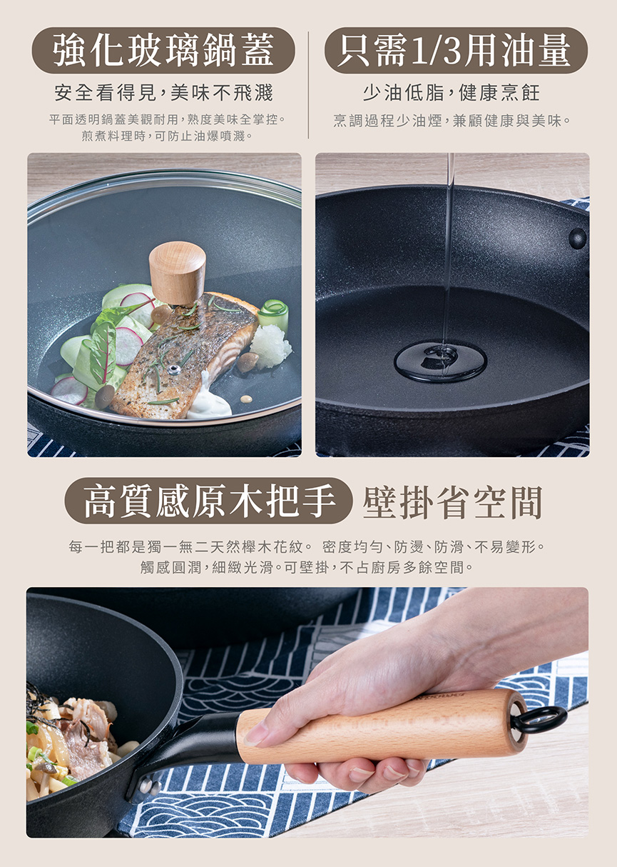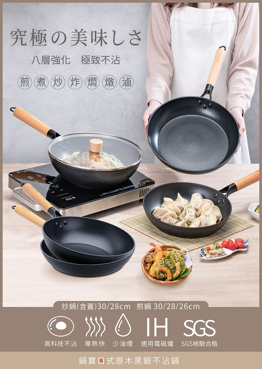 🔸日式原木黑鍋不沾鍋|質感原木手柄,實用與美感兼具